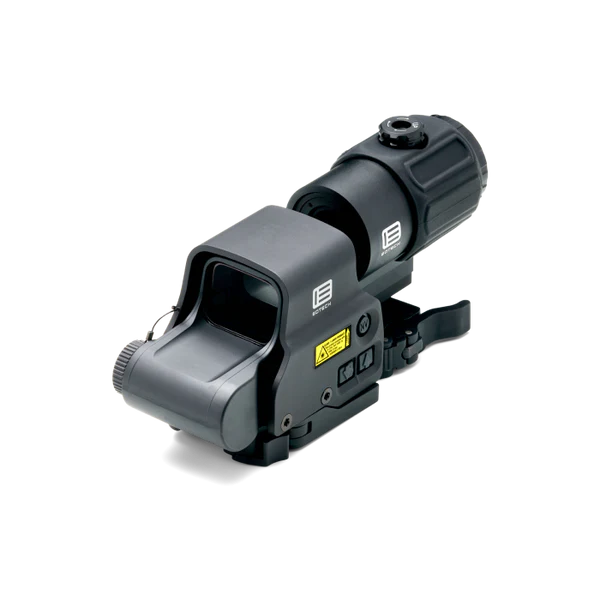 HHS VI это черный голографический коллиматорный прицел Эотек EXPS3-2в комплекте с увеличителем Еотеч G43. Независимо от цели, прицел обеспечивает мгновенный переход с ближней на дальнюю мишень.